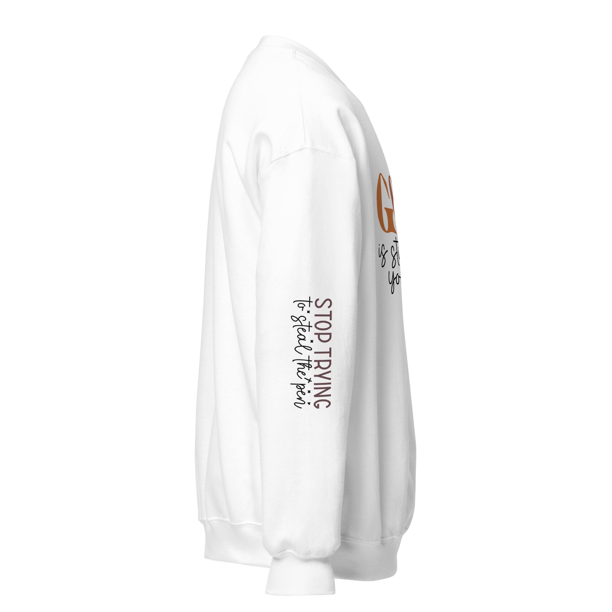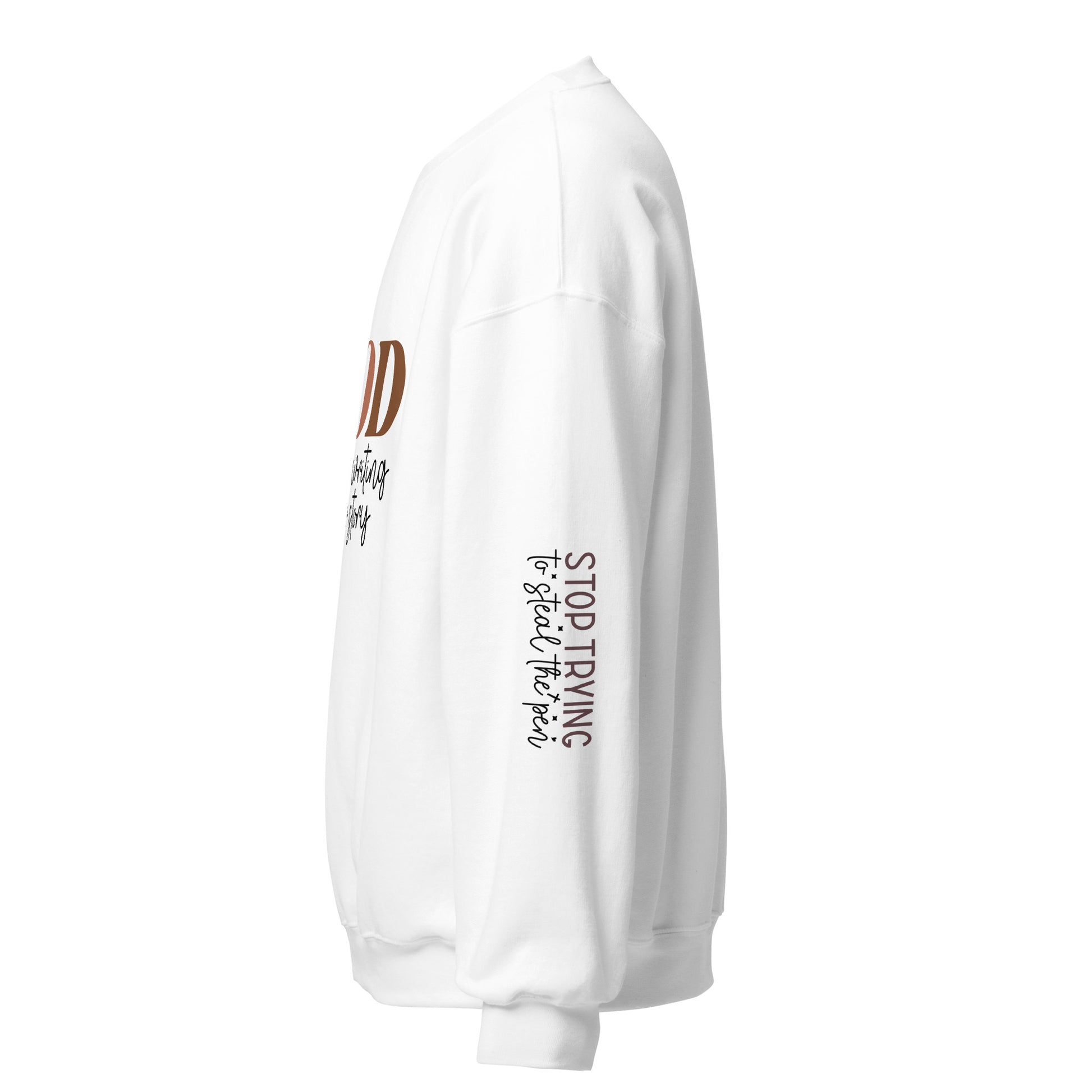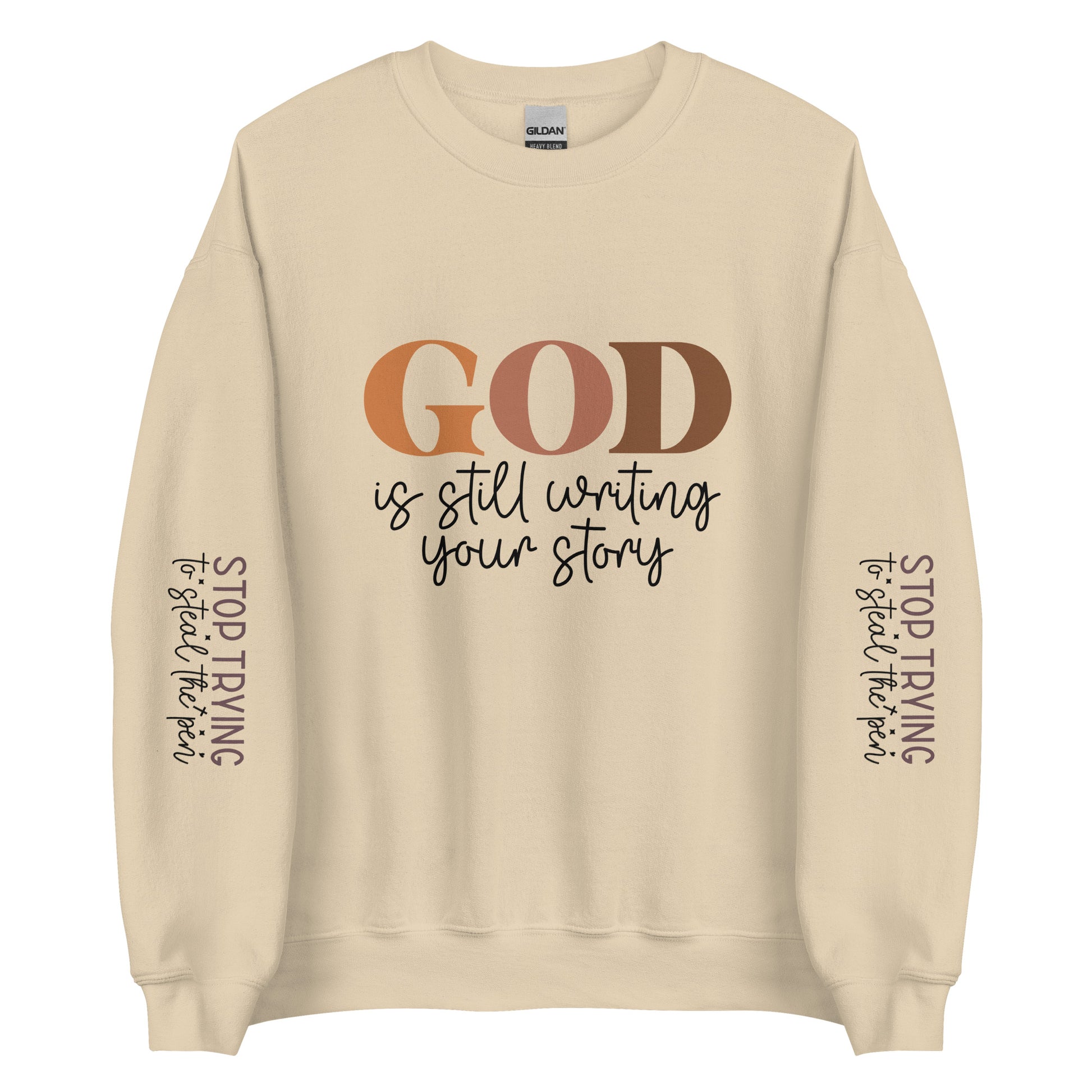 Why stress when the Author of life’s got your back? This fun and faith-filled sweatshirt reminds you to let go and trust the process with "God is Still Writing Your Story" splashed across the front. And because we know it’s tempting to take control, both sleeves playfully warn, "Stop Trying to Steal the Pen!" This isn't just a cozy reminder—it's a conversation starter! Plus, it's made from air-jet spun yarn for that extra soft, comfy feel, and it’s pre-shrunk with a classic fit, so you’ll look and feel great from the moment you put it on. Perfect for keeping cozy while letting faith take the lead!